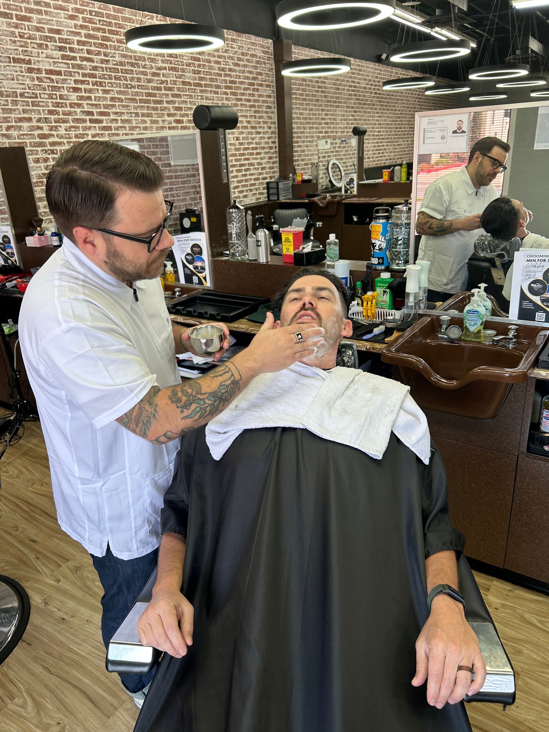 Enjoy a luxurious, precision face shave with hot towels for the ultimate in relaxation and a sharp, fresh appearance.